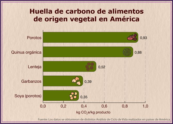 Antes de irme, dejo esta aclaración: un análisis de ciclo de vida contempla TODAS las actividades que pueden generar emisiones, por ejemplo, la producción de fertilizantes, el transporte de esos fertilizantes, el consumo de agua, de energía, etc. Son estudios muy exhaustivos y caros de hacer y a partir de los ACV es como obtenemos las huellas de carbono de productos, actividades o procesos. Los ACV pueden cubrir las emisiones desde que se fabrica el producto hasta que éste termina su vida útil en un basural o en una planta de reciclaje (de la cuna a la tumba). Pero también se puede limitar ese alcance del estudio y, por ejemplo, se pueden considerar solamente las emisiones que ocurren entre que se fabrica el producto hasta que esté listo para ser transportado hacia los consumidores (de la cuna a la puerta). Este es el caso de los ACV que presento acá. Además, menciono que tuve que incluir un dato de EEUU porque no encontré ACV de los garbanzos en Latinoamérica y no los quise dejar fuera.