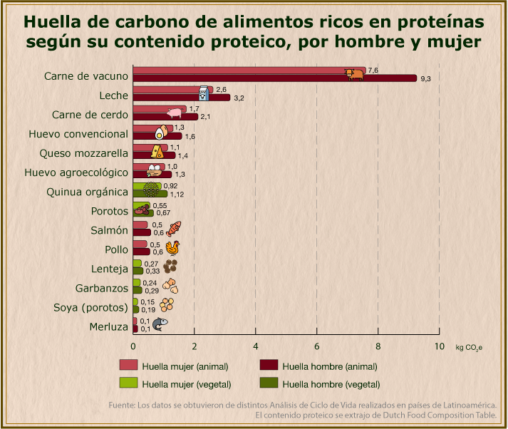 - Estos son gráficos que comparan solamente la huella de carbono. La merluza aparece como la mejor opción, pero, al menos en Chile, están sobreexplotadas, lo que afecta severamente la sobrevivencia de la especie. Lo que quiero decir con esto es que todo lo que hacemos tiene un efecto en el ecosistema, ya sea porque contamina el aire, el agua o el suelo, porque reduce el hábitat de una especie o porque depreda un recurso, entre muchos, muchos otros impactos. Por ello es que hablamos de economías sustentables, que consideren todos los efectos de sus acciones, no solamente sus emisiones de CO2.